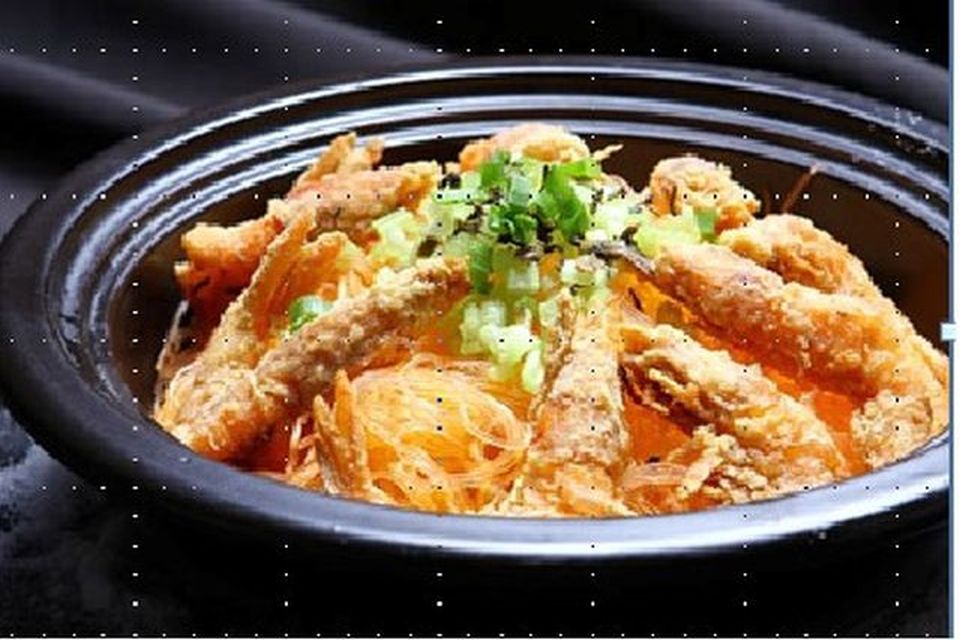 放入粉丝、清汤和臻厨虾黄浓酱等调料不断煸炒,最后放入包菜丝炒匀出锅装盘.